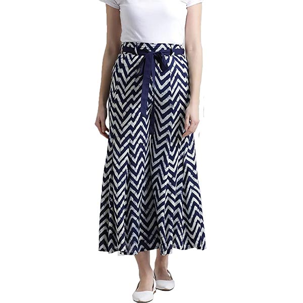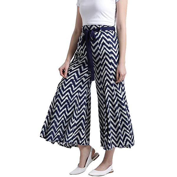 Navy zig-zag printed flared palazzo