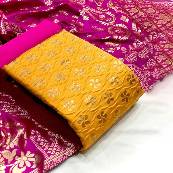 Dupion Silk Banarasi Jacquard Unstitched Dress Material